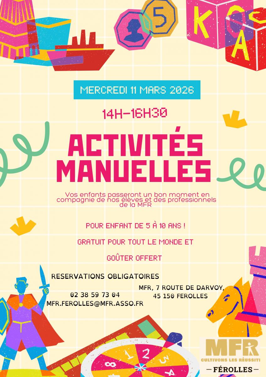 Les jeunes de CAPa SAPVER de la MFR organisent une après-midi ateliers créatifs le mercredi 11 mars 2026 pour les enfants de 5 à 10 ans.